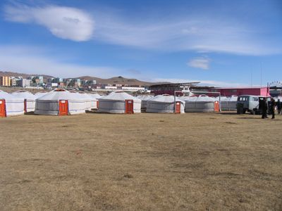 Жилдээ ганц удаа наадмаар “амь ордог” Цэнгэлдэх хүрээлэн хүний хөл хөдөлгөөнд бялхаж байлаа. Хаврын дунд сард морь уралдаж, бөх барилдахгүй нь ойлгомжтой. УИХ-ын гишүүн Д.Дамба-Очирын санаачлагаар 250 сая төгрөг орон нутгийн төсөвт суулгаж, 190 айлыг орох орон гэртэй болгож буй нь энэ юм. Бүтэн жилийн турш баг, сумын түвшинд гэр олгох иргэдийг судалсны дүнд 190 хүнийг сонгосон байна. Эдгээр хүмүүсээс гадна цаана нь гэр авах аз дутсан олон хүн үлджээ. Хотын утааг дээрх тоогоор нэмж, олон айлд гэр өглөө гэж Д.Дамба-Очирыг буруутгах хүмүүс байгаа ч орон сууцны хороолол барьчихаж чадахгүйгээс зарим нэгнийг нь ийнхүү орон гэртэй болгож буй нь буруу ч биш болов уу. Нэг гэрийн өртөг 1.2 сая төгрөгт босож, давхар бүрээстэй, шалтай гэрийг иргэдэд хүлээлгэн өглөө. Аймгийн Засаг даргын орлогч П.Пүрэвлхагва “Иргэддээ өгвөл өгсөн шиг өгнө өө. Иж бүрэн гэр шүү” гэсэн юм.
