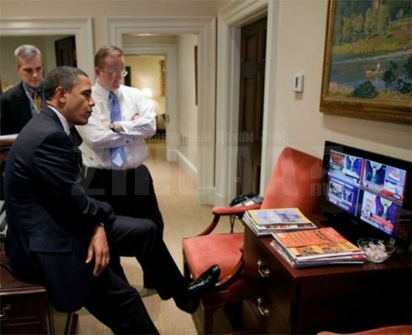 АНУ-ын Ерөнхийлөгч Барак Обама. Тэрээр ширээ, сандал дээр хөлөө тавьж суух дуртай бололтой.