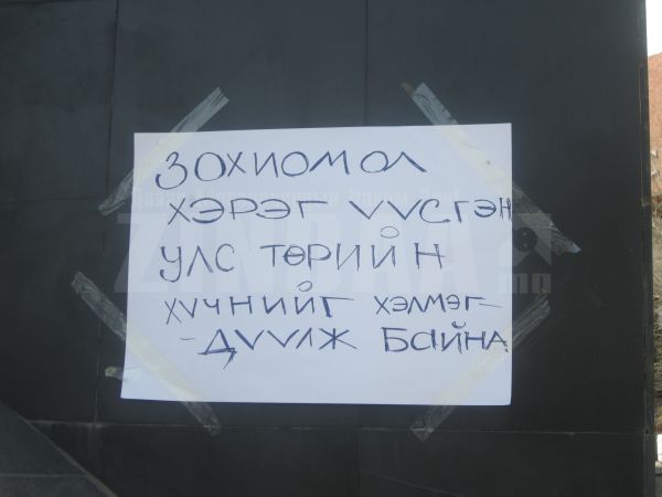 -Дээр хэлсэнчлэн улсынхаа Ерөнхийлөгч байсан хүнийг золбин нохой мэт аваад явж байхад энгийн иргэн биднийг бол өшиглөөд аваад явах биз. Өчигдөр орой ч тэр цагдаа нар биднийг тараахыг завдсан. Тиймээс би “Хэлмэгдэгсдийн хөшөөнөөс өөрийгөө гинжлэн цоожилсон юм. Ийм байхад аваад явчихгүй байлгүй. Н.Энхбаяр шоронгоос бичсэн захидалдаа “Би айхгүй байна” хэмээн бичсэнчлэн “Би айхгүй байна. Шударга үнэний төлөө үхэхээс ч айхгүй байна. Би энд ирэхээсээ өмнө гэрээслэлээ бичсэн.
