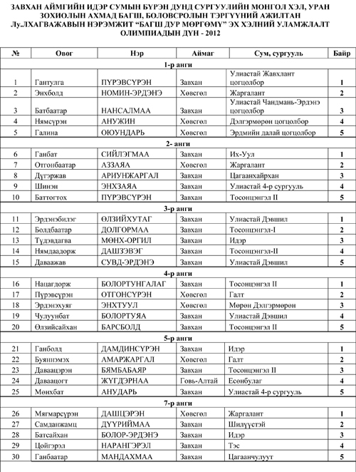 Их уулсынхаа салхинд хийморь лундаагаа сэргээсэн харчуул сумын төвийн улаан буланд ирж мэдлэг боловсрол, авьяасаараа тодорсон багш сурагчдад шагналыг нь гардуулсан юм. Хамгийн гол шагнал болох мэргэжлийн багш нарын төрөлд тэргүүн байрыг Говь-Алтай аймгийн Есөнбулаг сумын багш О.Сүнжидмаа тодров. Тэрээр улсын уралдаанд мөн тэргүүлжээ. Аварга бол аваргаараа л байдаг ажээ. Түүнийг шалгаруулж буй эрхэм докторуудын үнэлгээ мөн ижил байдаг ажээ. Сүнжидмаа багшид нэг сая төгрөг, алтан цом, “Багш дор мөргөмү” хэмээх цул эрдэнийн тэмдгийг боловсролыг дэмжигч “Лхагважав сан”-гийн тэргүүн гардуулсан. Түүний ард Орхон аймгийн Бүрэнтогтохын Нямсүрэн, Хөвсгөлийн Галтын Алтангэрэлийн Цэрэнхүү нарын багш нар цулбуурдуулж, өндөр шагналын эзэд боллоо. Мэргэжлийн багш нарын тэргүүн шагналын санг ирэх жилээс нэг сая бус арван саяд ч хүргэх бодол байна гэж Л.Төрбаяр захирал хэлэхүйд уухайлсан олны дуу, хөөр баяр улаан булангийн дээврийг зад татах дөхсөн шүү. Ийнхүү баяр бахдалаар халгиж, билэг оюунаар жигүүрлэн, номын гэгээ гэрэл, их уулсын сүр хүчинд алгадуулан хэдэн өдрийг Идэрийнхээ хөвөөнд өнгөрүүллээ. Салхи нь зуу зуун жилээр тарнийн шидийг оршоосон билэг төгөлдөр нутагт улирлын сайханд ирээд буцахуйд нас хэдэн жилээр уртсах хувийг олдог билээ л.