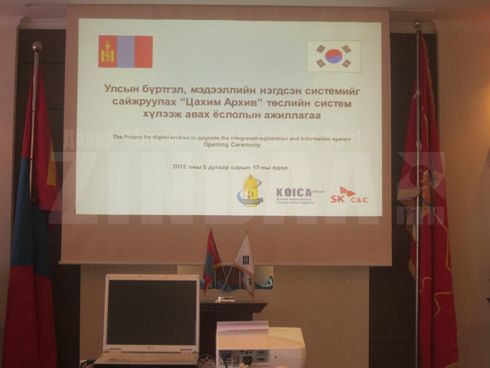 Улсын бүртгэлийн газрын нэгдсэн системийг сайжруулах “Цахим архив” төслийн систем хүлээж авах ёслолын ажиллагаа өчигдөр УБЕГ-ын I байрны хүндэтгэлийн танхимд боллоо. БНСУ-аас Монгол улсад суугаа онц бөгөөд бүрэн эрхт элчин сайд Ли Тэ Ру, Улсын бүртгэлийн Ерөнхий газрын дарга Л. Амарсанаа, Сангийн яамны зээл тусламжийн бодлого үйл ажиллагааны дарга Б. Хүрэлбаатар, Хууль зүйн дотоод хэргийн дэд сайд хатагтай В. Удвал нар, гүйцэтгэгч байгууллагын төлөөллүүд болон бусад албаны хүмүүс оролцов.
