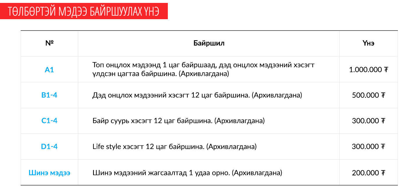 Жич: Улс төрийн агуулгатай болон шууд бус сурталчилгааны материалд доорх үнэ хамаарахгүй.