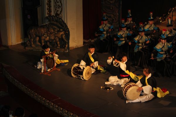 Тоглолтын үеэр удирдаач Буянбаатар БНСУ-с ирсэн уран бүтээлчдэд чин сэтгэлийн талархал илэрхийлж “Хэл, ёс заншил өөр учраас бидний хөгжмийн хэмнэл яах аргагүй өөр. БНСУ-д бөмбөрийн сургалт судлагаа сүүлийн 15 жилд маш эрчимтэй хөгжсөн.Үндэсний урлаг бол аливаа орны тусгаар тогтнол байдаг” хэмээгээд нэрт хөгжмийн зохиолч Хангалын “Салхит шувуу” уран бүтээлийг зориулсан юм.