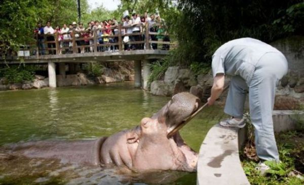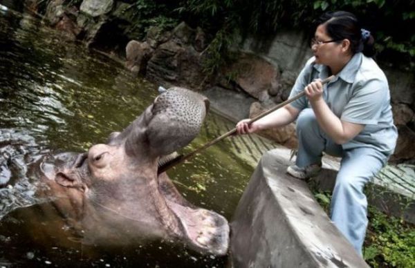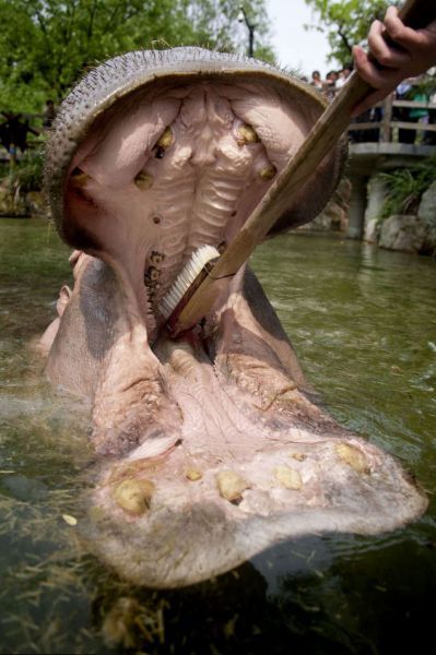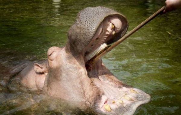 Шанхайн амьтны хүрээлэн дэхь усны үхэр шүдээ угаалгах тун дуртай гэнэ. Тэрбээр долоо хоногт гурван удаа шүдээ угаалгадаг ажээ.