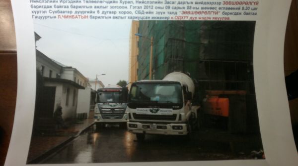 Нийслэлийн Засаг дарга бөгөөд Улаанбаатар хотын захирагчийн шийдвэрийг зөрчиж буй асуудлаар СБД-ийн VI хорооны СӨХ-ны дарга Н.Бумбар, оршин суугч Г.Мэндбаяр иргэдийн төлөөлөл нар мэдээлэл хийлээ. Хотын төвийн А зэрэглэлийн бүс гэгддэг Сүхбаатар дүүрэгт л гэхэд 15 зөвшөөрөлгүй барилга сүндэрлэж байна. Үүний нэг нь СБД-ийн VI хороонд баригдаж байгаа "Гацуурт" компанийн захирал Л.Чинбатын эзэмшлийн 12 давхар зоорьтой барилгын ажил юм. Хэдийгээр нураах шийдвэр гарсан ч иргэдийн тайван амьдрах эрхэнд нь халдаж шөнө оройн цагаар барилгын ажил хийгдсээр байгаа аж. Иргэдийн төлөөлөл “Гацуурт”-ын Чинбат Нийслэлийн Засаг даргын шийдвэрийг зөрчиж байна гэж үзэж байна гэлээ. Тиймдээ ч “Гацуурт”-ын Л.Чинбат 2002 оноос Улаанбаатар хотын өмнөх захирагчидтай хуйвалдаж, СБД-ийн VI хорооны 572 метр квадрат талбайг хууль бусаар авч байсан баримт бидэнд бий хэмээсэн юм. “Гацуурт” компани хууль бусаар авсан тус газартаа 2010 оноос эхлэн НМХЕГ-ын зөвшөөрөлгүй, барилгын зураг төсөлгүй 13 давхар барилга / зоорьтойгоо 13 давхар/ барьж эхэлсэн. Гэтэл өнгөрсөн долоо хоногт Нийслэлийн Засаг дарга бөгөөд Улаанбаатар хотын захирагчийн шийдвэрээр тус барилгыг буулгах тухай захирамж гаргасан ч өнөөг хэр хэрэгжихгүй байна гэсэн юм. Тухайлбал: Энэ сарын 8, 9-ний шөнүүдэд тав, зургаан бетон цутгагч машин ирж, шөнөжин оршин суугчдыг унтуулаагүй төдийгүй орой 22:00 минутаас эхлэн өглөөний 07:00 цаг хүртэл хууль бусаар ажилласан байна. “Гацуурт” компаний барьж буй уг барилга Нийслэлийн Засаг даргын захирагчын албанаас гаргасан “зөвшөөрөлгүй” гэх тодотголтой 70 барилгын 5-рт жагсаж байна. Оршин суугчдын “Эрүүл аюулгүй орчинд амьдрах” үндсэн хуулийн болон бусад хуулинд нийцэж байна уу үгүй юу гэж Н.Бумбар онцолж энэ асуудал дээр хотын удирдлага дахин хяналт, шалгалт тавихыг хүсэж байгаагаа илэрхийллээ.