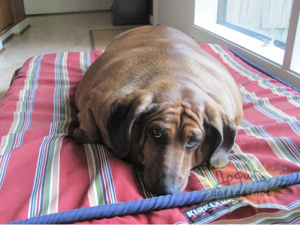 Энэ нохойг Оби гэдэг. Таван настай бөгөөд дэлхийн хамгийн бүдүүн нохойгоор тодроод байгаа. 35 кг жинтэй түүнийг 10 кг турахгүй бол урт наслахгүй гэдгийг эмч нар хэлдэг байна. Алхах дургүй Оби эрхэлж хэвтэнгээ хоол идэх дуртай ажээ.