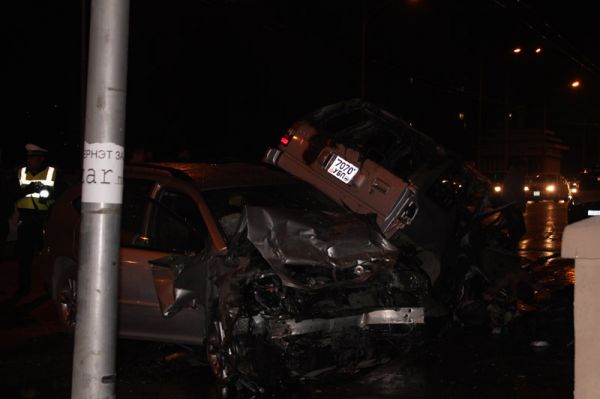 Өчигдөр 22 цаг 50 минутын орчимд Энхтайваны гүүрэн дээр осол гарч нэг хүн нас барсан байна. Тодруулбал 7070 УБП улсын дугаартай wizard 9000 УБЧ улсын дугаартай Lexus-RX400 маркын машинууд хоорондоо мөргөлдсөн юм. Ослоос хэдхэн минутын дараа Wizard машин шатаж, сууж явсан хоёр зорчигч нь гарсан байна. Харин жолооч нь жолооны хүрд, суудал хоёрынхоо хооронд шахагдан гарч чадахгүй байсаар нас баржээ.