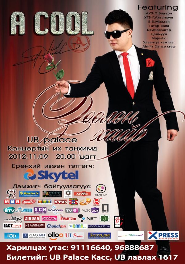 Өнөөдөр газар дэлхий цагаан нөмрөгөө өмсөж, шинэхэн цас зөөлнөөр бударсан тийм л сайхан өглөөтэй золголоо. Сайхан гэгээтэй дурсамжуудаар бодол сэтгэлээ хөглөж, хайртай хүнтэйгээ хаашаа ч юм алхаад л баймаар... Ай даа юутай сайхан өглөө вэ. Бас би оройг хүлээнэ. Энэ үдэш  олон сайхан хайрын аязууд эгшиглэж, эгэлгүй агуу хайрыг хамтдаа магтан дуулж, уяран хайлах үдэш байх болно.  Өнөөдөр оройн 20 цагаас дуучин A Cool-ын “Зөөлөн хайр” анхны бие даасан тоглолт нь  UB паласын концертын их танхимд эгшиглэх гэж байна. Энэхүү тоглолтыг надтай адилхан хүсэн хүлээсэн хүмүүс ч олон байгаа байх. Ийм л сайхан үдэш хайрттайгаа болон дотны хүмүүстэйгээ зөөлөн хайрын эгшгэнд бүүвэйлэгдэж, хайр хэмээх үгээр илэрхийлж боломгүй агуу зүйлийг хамтдаа магтан дуулж энэ үдшийг мартагдахааргүй өнгөрүүлэхийг хүссэн хэн боловч хүрэлцэн ирээрэй.  Дуучин A Cool-ын дуунууд миний чихэнд бус сэтгэл зүрхэнд эгшиглэдэг болохоор би түүний дуунуудыг сонсох дуртай. Өнөөдрийн зөөлөн цас хаялсан үдэш "Зөөлөн хайр" тоглолт олон хүний сэтгэлийг хөдөлгөсөн сайхан тоглолт болно гэдэгт эргэлзэхгүй байна.